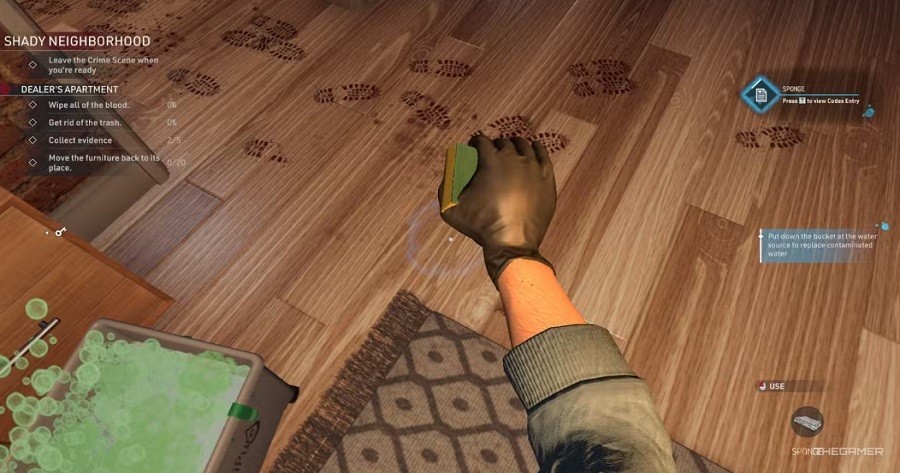 A notoriously tricky bloodstain just won't come off the floor. What's your next move in-game?